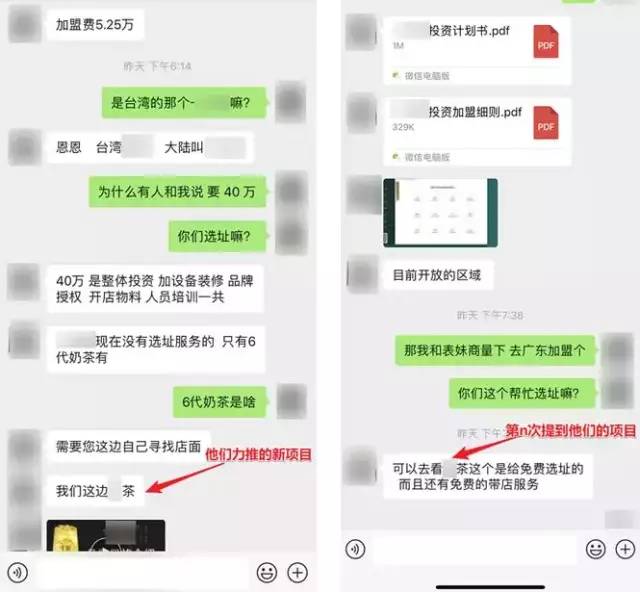 他还说很多人因为不符合某点点的加盟条件,都选择加盟了这个新项目。尽管我一再表明我加盟某点点的强烈意愿,他还是不断地给我“科普”那个我没有听说过的某茶。
