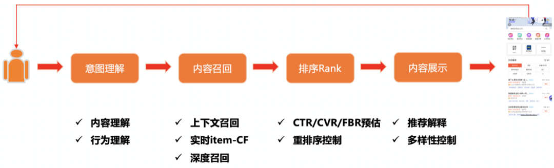 意图理解:C端用户进入后通过内容理解、行为理解