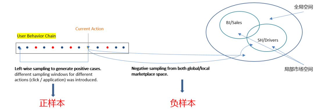 ② 正向样本Left-wise采样,负向样本全局空间负采样加局部市场空间采样: