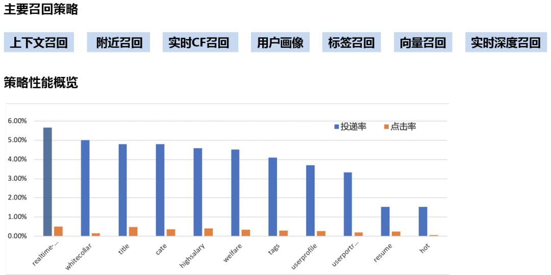 58招聘推荐系统的召回策略多达十几种。主要有:上下文召回、附近召回、实时CF召回、用户画像、标签召回、向量召回、实时深度召回。