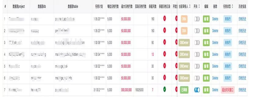 归档操作也是个比较频繁的需求,一旦生产产生大量数据后,就需要做冷热数据分离,要把不需要经常用的数据搬走。原来这个操作比较费劲的,需要DBA跟在后面做很多事情,而现在只需要研发自助解决。