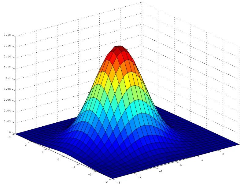 中心的数值最大,离中心距离越远,数值越小。高斯卷积数学表达式说明: