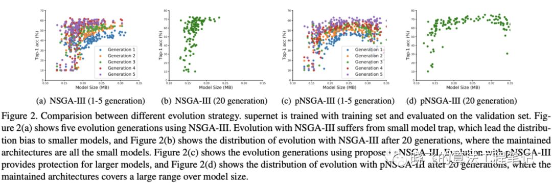 如图2所示,使用pNSGA-III能避免小模型陷阱,保留较大的有潜力的网络