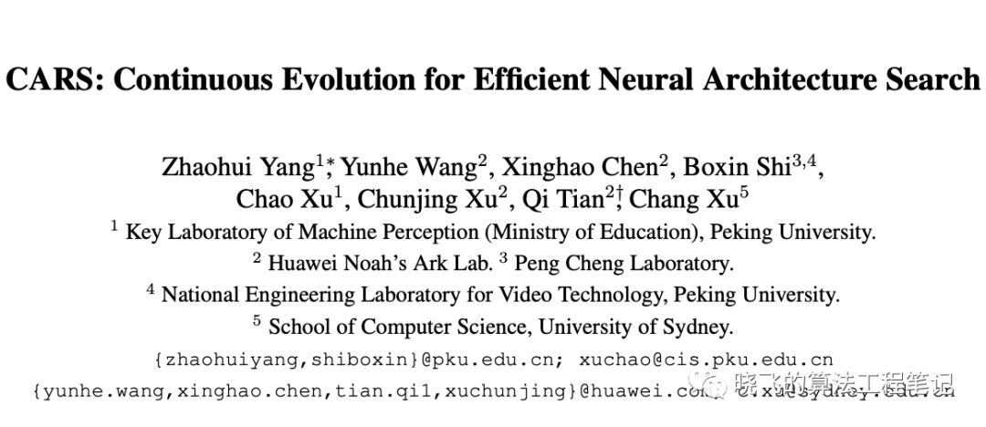 论文: CARS: Continuous Evolution for Efficient Neural Architecture Search