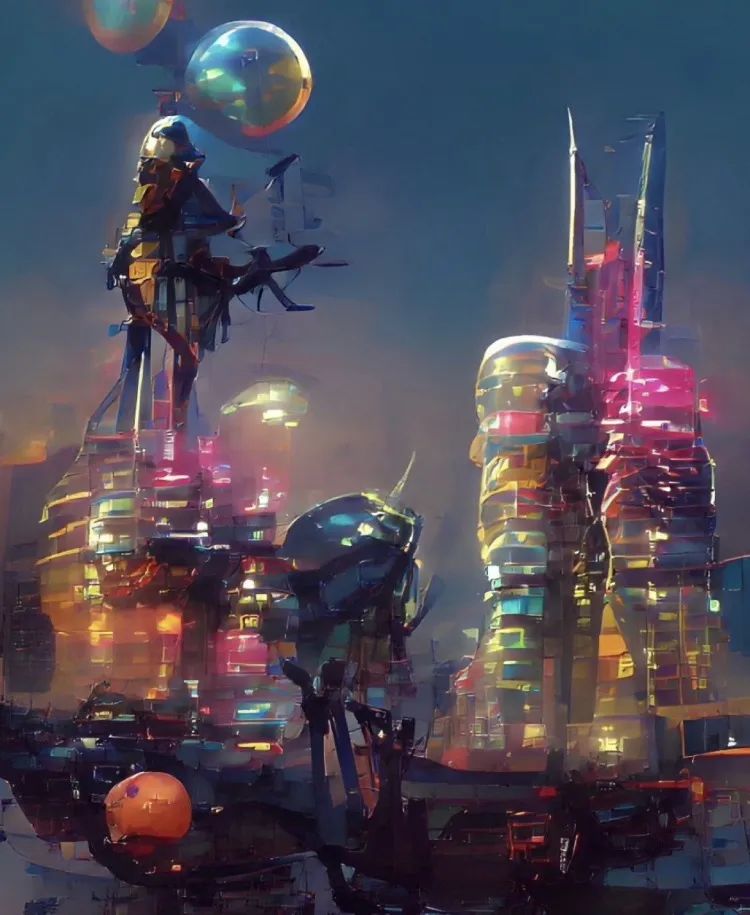 By Tiny_Radi 再者,不少艺术界业内人士表示Disco Diffusion在画面细节中常常出现不符合整体作品逻辑的元素,如果需要商用,仍需具备一定绘画功底的人来对整体画面细节进行调整。