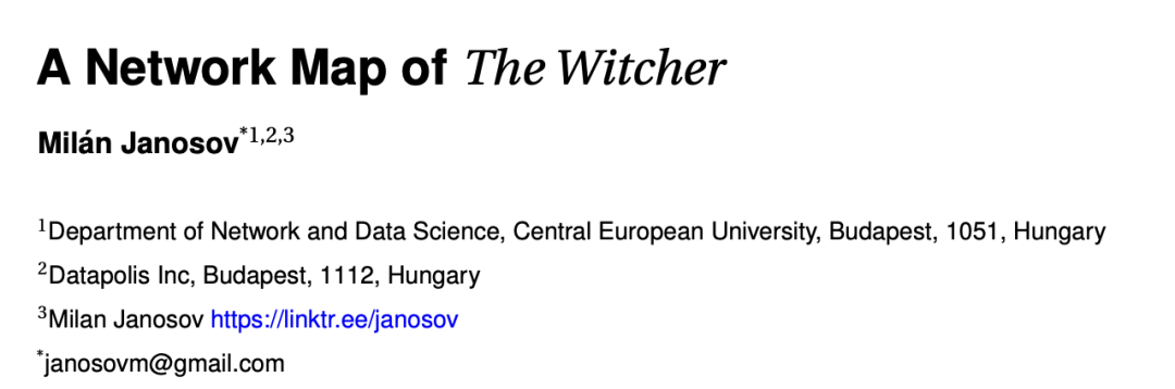 为了帮助广大网友理清人物关系脉络,Datopolis首席科学家Milán Janosov专门为此写了一篇论文A Network Map of The Witcher。