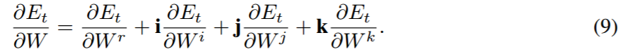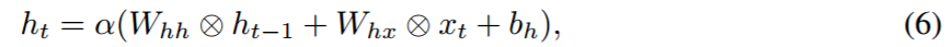 基于实值 RNN 的前向传播,QRNN 的前向方程扩展如下: