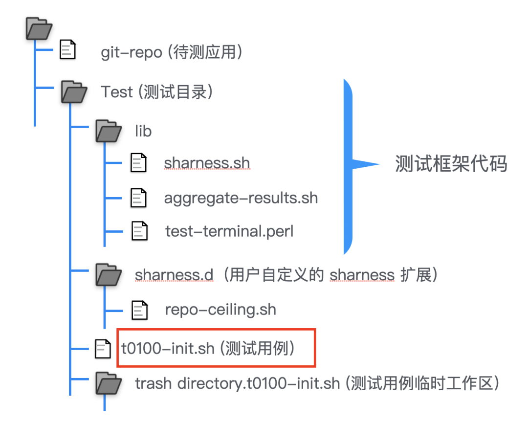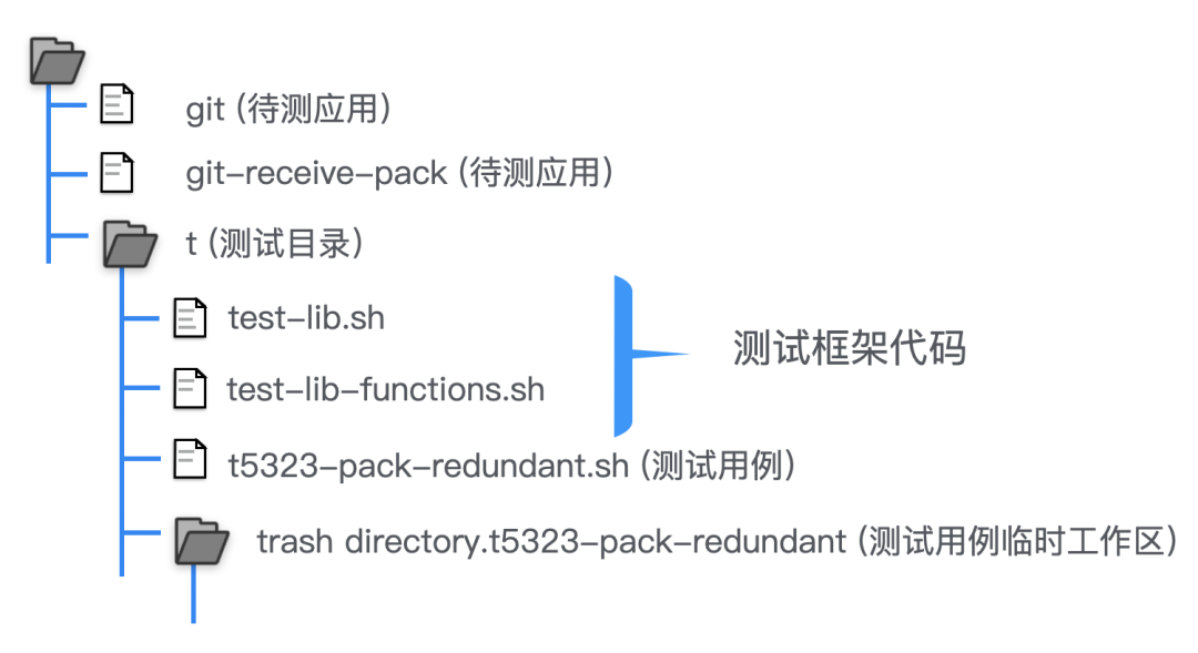 每一个测试用例在执行时会创建一个独立的临时目录,例如 trash directory.t5323-pack-redundant。测试用例执行成功,则该目录会被删除。