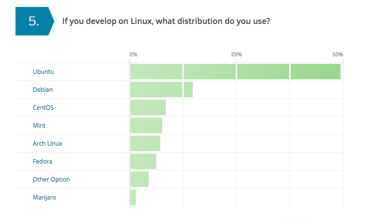 5. 有一半的Linux开发者使用Ubuntu作为他们的发行版。