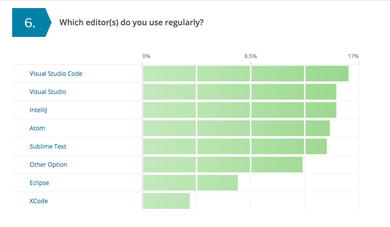 6. 六分之一的开发人员使用Visual Studio Code作为文本编辑器。