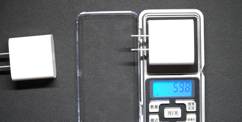 我们接着用最常用的称重法来辨别一下,苹果 18W 充电器重 61.4 克,PDD 充电器重 59.8 克,和相差不到 2 克,仅凭手持感受重量,很难辨别。使用充电头的 Power Z KM001C功率表实测,PDD 充电器,支持 PD、QC、FPS、Apple2.4 等快充协议,相对于苹果原装的充电器仅支持PD,简直太良心。