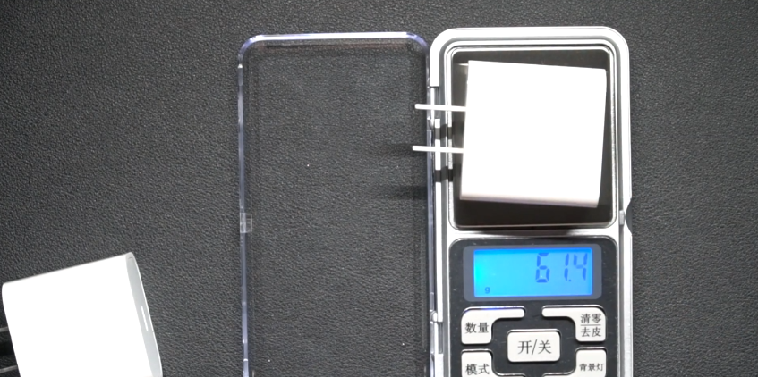 背面是空板,这主板重量很轻,其实 60 克重量的秘密在充电器壳子里,一块重达 25 克的配重铁块。