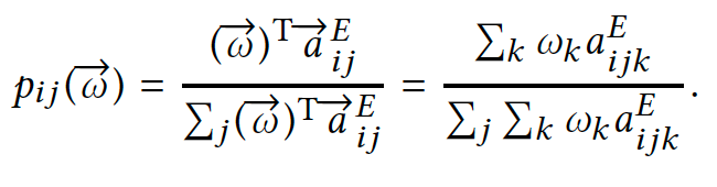 传统的监督式关键短语提取模型取决于标记的短语的特征,而流行的非监督式模型主要依赖于词图的结构,候选词作为节点,边捕获词之间的共现信息。然而,将所有这些多维异构信息系统地集成到一个统一的模型中是相对未曾探索过的。在本文中,专注于如何有效地利用多维信息来提高关键短语提取性能(MIKE),其中包括词共现,文档主题分布,Word2Vec。与现有的基于图的关键短语提取算法相比,MIKE充分利用了候选词之间的共现性、候选词的特征和候选词的主题特征,通过大幅度修改转换概率矩阵和重置底层词图概率向量,优化随机游走模型。这使得词图随机游走过程语义更丰富。(公式一为利用共现优化边特征,最终对转换概率进行修改;公式2为利用主题,词特征优化点特征,最终对重置概率进行修改)
