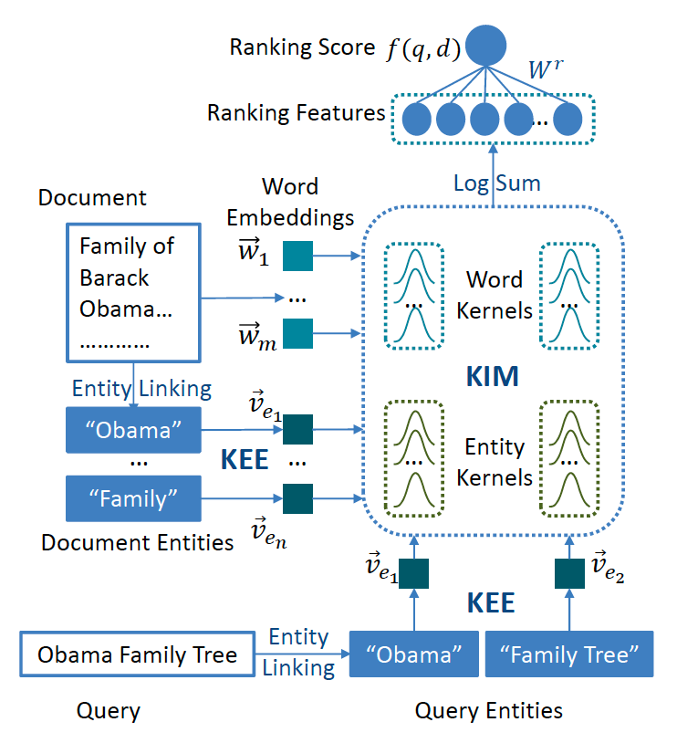 本文提出了一个使用神经网络对实体显著性进行端到端估计的核心实体显著性模型(KESM)。给定文档中带注释的实体,KESM使用知识丰富的embedding表示实体,并使用内核交互模型对实体和单词之间的交互进行建模。通过KESM结合交互模型的核得分来估计实体显著性,并使用大量显著性标签对整个模型(包括知识丰富的embedding和内核交互模型)进行端到端的学习。