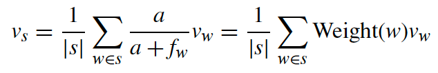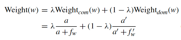 为了更好地适应不同领域的任务,在句子embedding计算过程中改变了单词的权重函数。该权重是公共语料库和领域语料库的加权和: