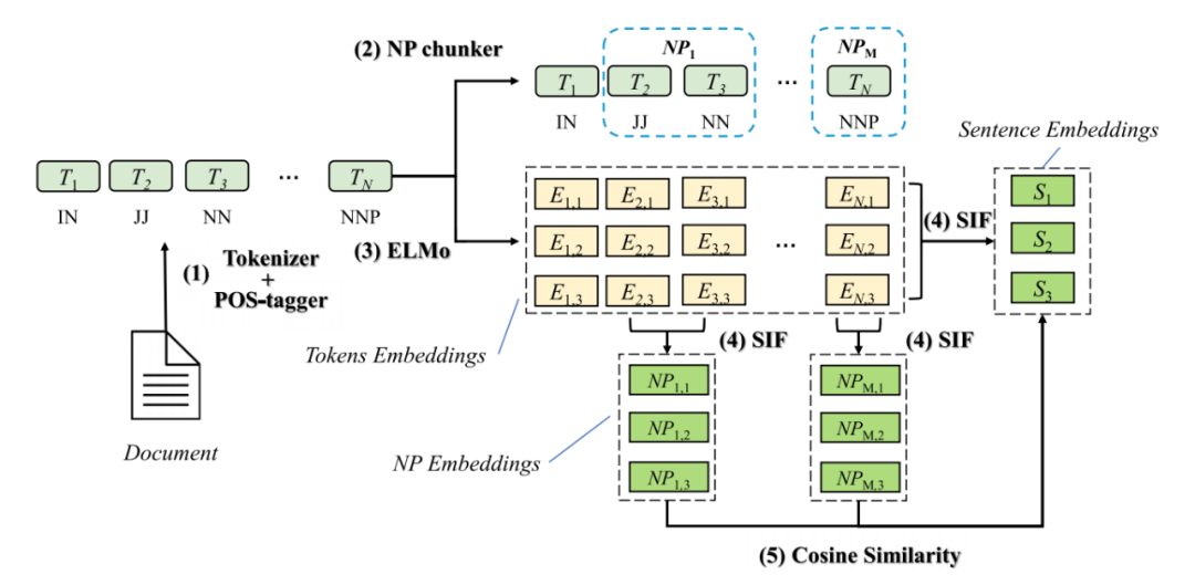 最终由文档和名词短语之间的相似度计算(SIFRank)得到关键词: