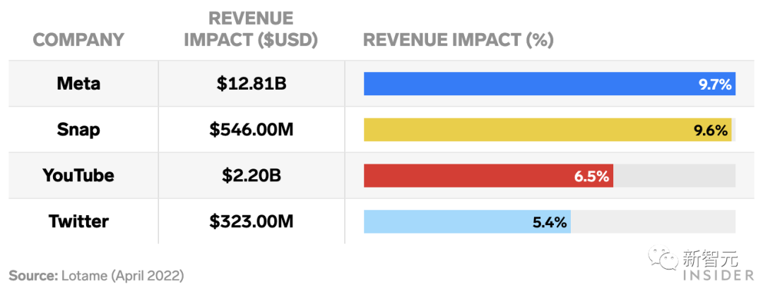 2022年苹果新iPhone的隐私变化对大科技公司的预计收入影响