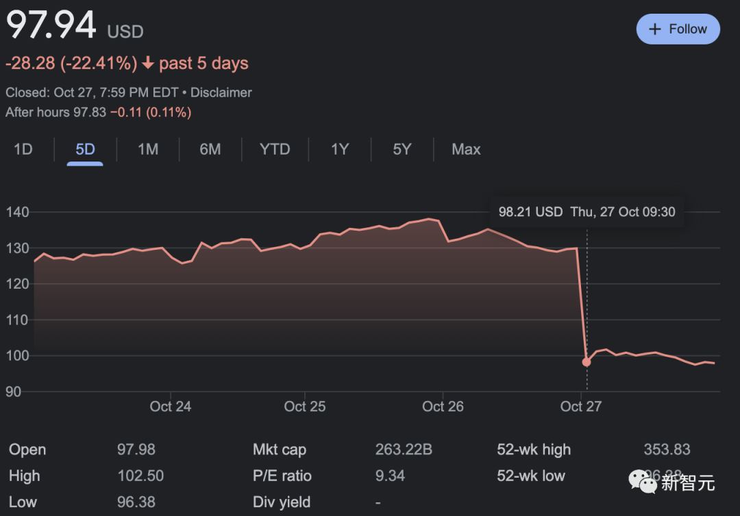 仅在周四一天,Meta的股价就狂跌25%。现在,Meta的市值已经蒸发了超过650亿美元,这其中有