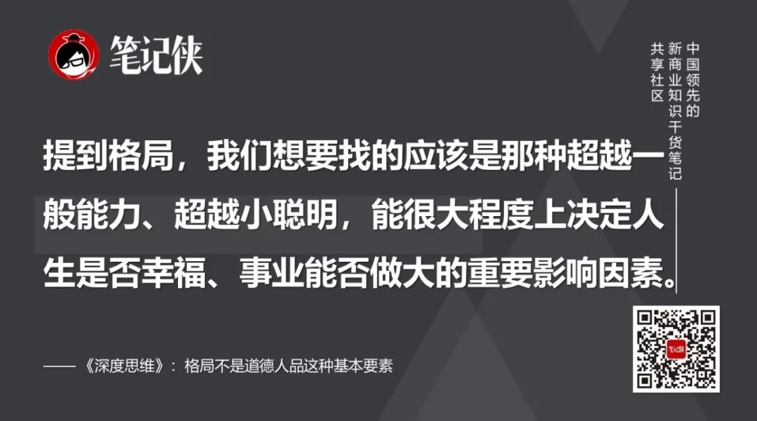 提到格局,我们想要找的应该是那种超越一般能力、超越小聪明,能够很大程度上决定人生是否幸福、事业能否做大的重要影响因素,而不是道德人品这种基本要素。