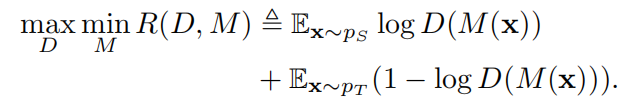 换言之,共享表示 M 将无论是源域还是目标域的样本映射到相同的空间,让 D 无法区分它们。