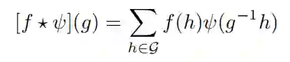 为了保证变换等变性,GEC 中,特征图定义为变换群 G 的函数,则对输入图像 f 的群卷积为: