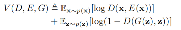 参考论文:J. Donahue, P. Krahenb ¨ uhl, and T. Darrell, “Adversarial feature learning,” arXiv preprint arXiv:1605.09782, 2016.V. Dumoulin, I. Belghazi, B. Poole, O. Mastropietro, A. Lamb, M. Arjovsky, and A. Courville, “Adversarially learned inference,” arXiv preprint arXiv:1606.00704, 2016.