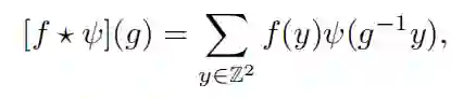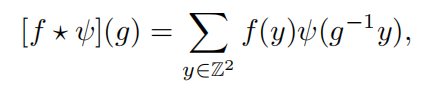 生成了定义在 G 上的群卷积特征图 [f*φ]。因此,输入图像得到的特征图都是 G 的函数,而该特征图 f 与滤波器φ的群卷积定义为: