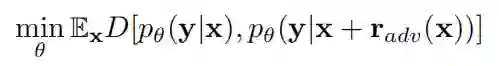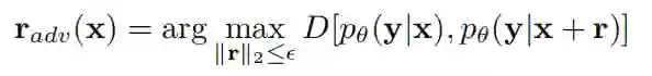 假设一个标注或未标注样本 x,和参数化模型,输出类标的条件化分布是 pθ(y|x)。VAT 找到 x 的对抗方向: