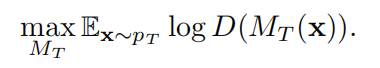 同时通过最小化对抗损失训练目标表示 Mt,尽可能使 Mt 骗过域判别器: