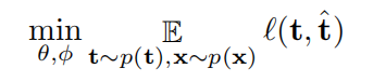 自编码变换的问题可以归结为表示编码器 E 和变换解码器 D 的联合训练。可以通过最小化变换 t 和估测值 t’之间的重构误差 l(t,t’) 来训练 AET:
