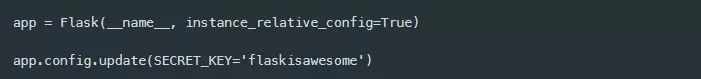 为了显示错误消息,我将通过前边从Flask包中导入的flash方法来使用消息闪烁功能。此外,我需要给应用程序一个密钥,因为消息闪烁用到了session,该session过程需要在应用程序实例的配置字典中设置一个秘钥,如下所示。