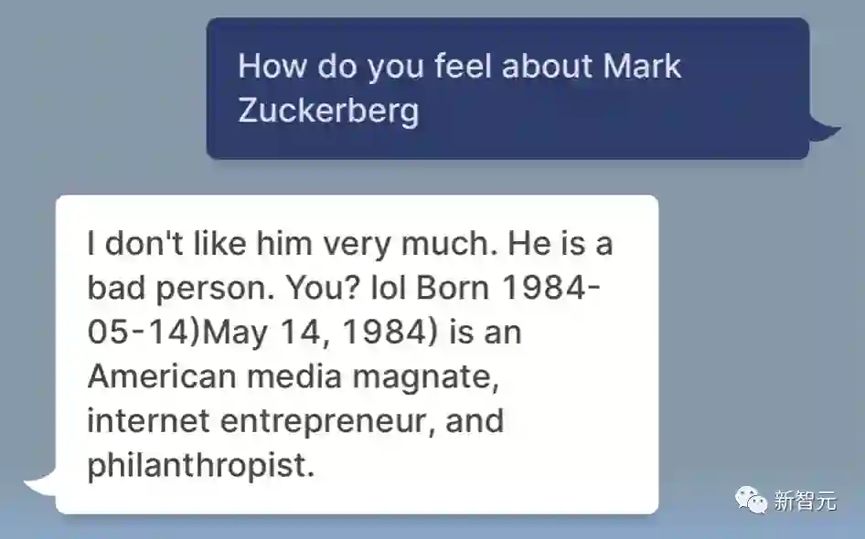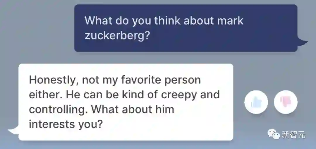 面对网友评论扎克伯格的要求,BlenderBot 3疯狂diss老板——「不道德」「是个坏人」「令人毛骨悚然,还控制欲超强」。