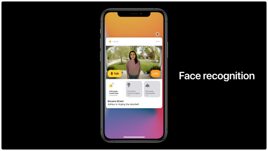 iOS 14 的家庭应用主要对智能摄像头的相关功能进行了提升,可以在监控摄像头和门铃中进行人脸识别,并向你发送来访者通知。摄像头还支持了划区监控,让用户选定画面中的活动区域进行重点监控。