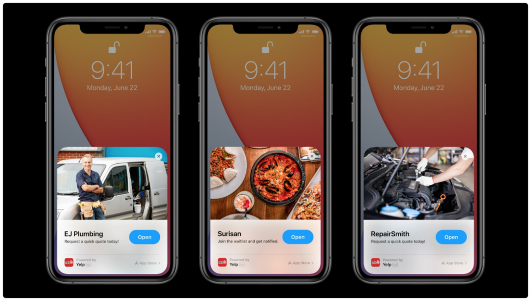 iOS 14 推出了一项类似微信小程序的功能,名为 App Clips。这项功能可通过网页、iMessage、扫描二维码、扫描 NFC 标签等形式触发,它包含了 app 的一小部分功能,无需安装就能使用。