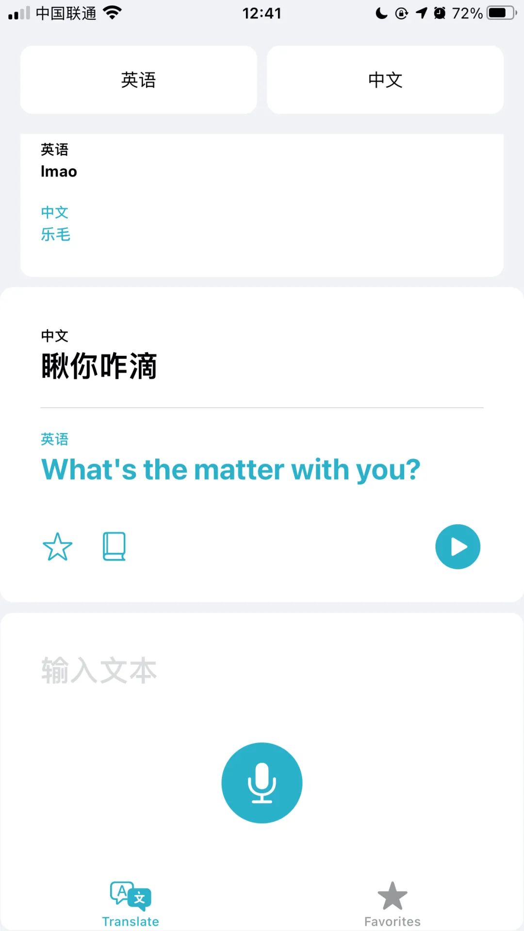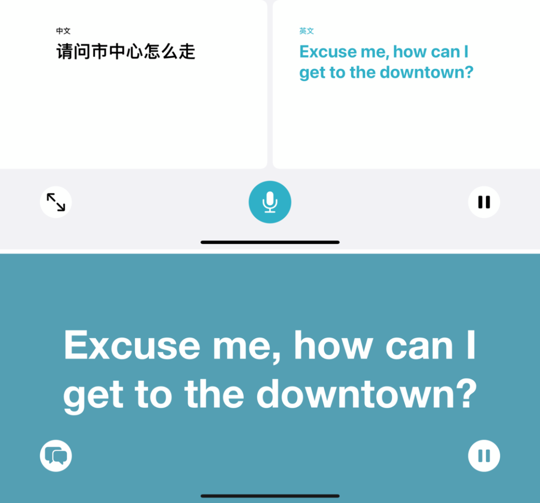 翻译应用还具有交谈模式,只需将屏幕横过来,就能自动识别对话者的语言,并显示在屏幕两侧。