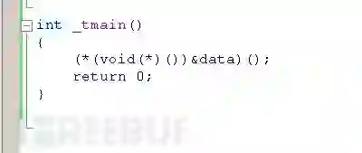 然后在main函数中定义函数指针指向shellcode的首地址,然后调用这个shellcode首地址的这个函数,读起来很绕,但实际上一条指令就能够完成: