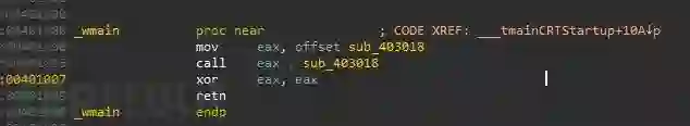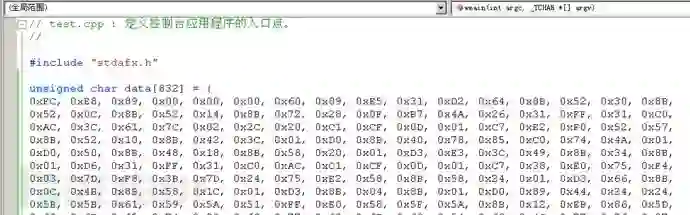 当然,这里的写法并不局限于一种,只要理解其中的原理即可。随后生成Release版的EXE文件,就能够使用OD或IDA对shellcode进行分析了,用IDA加载出来的Main函数如下: