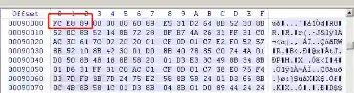 589824,转换成十六进制为0x90000,应该就是要找的上下文地址,接下来就是到进程内存中去找到这一段数据了,使用WinHex打开对应进程的内存,找到0x90000这个地址: