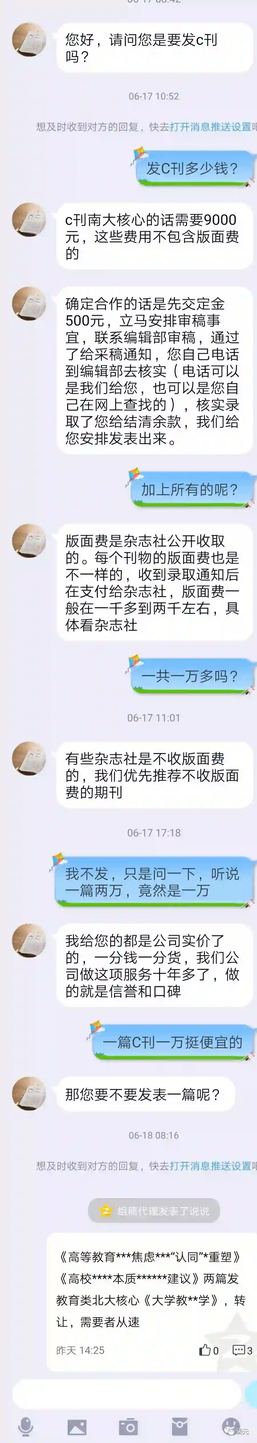 据知情者透露,在一些学术实力较差的地方院校(这样的院校每个地级市就有两三所),发论文几乎全部靠买。因为理工科一般以发表SCI等国际刊物为评职称参考依据,这种以次充好贩卖版面的行为,在文科中尤为严重。一篇论文,普刊几百到上千块,南京大学核心论文(CSSCI)或者北大核心则两万到四五万块不等。