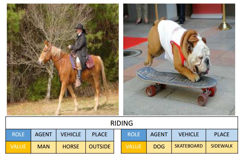 图2. 对应于相同动词的图像在涉及动词角色的内容上可能完全不同。这使得情景识别变得困难。