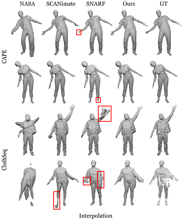 因此文章提出 Adjacent Part Seaming,即通过显式地建模相邻部件之间的相互作用来维持部件之间的稳定连接,显著提升了分部件重建方法对新动作的泛化能力。