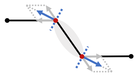 邻接部件缝合的核心是通过对相邻部件的运动进行加权对部件末端施加形变,保证部件接面的对齐。具体而言,是通过叠加偏移量使局部空间扭曲,实现非刚性形变。