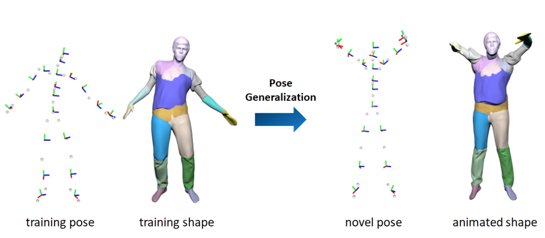 在推理阶段,通过操纵骨架,即可进行对人体的驱动。