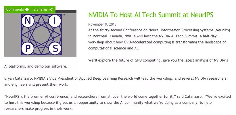 图|英伟达在几天前就公开对外以 NeurIPS 来称呼(图片来源:英伟达)