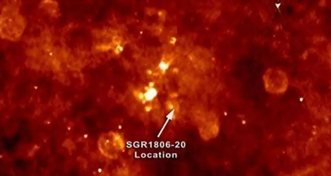 2004年12月27日,来自银河系的另一端的具有超强磁场的中子星-磁星爆发了伽玛射线暴。发生爆发的磁星编号为SGR 1806-20,它也被称为“软伽玛射线复现源”,通常这类天体辐射集中在低能伽玛射线波段,但当其磁场发生重置时,便会发生强烈能量爆发。它距离地球达5万光年,但它巨大的威力使人们在地球上甚至用肉眼都能看见。