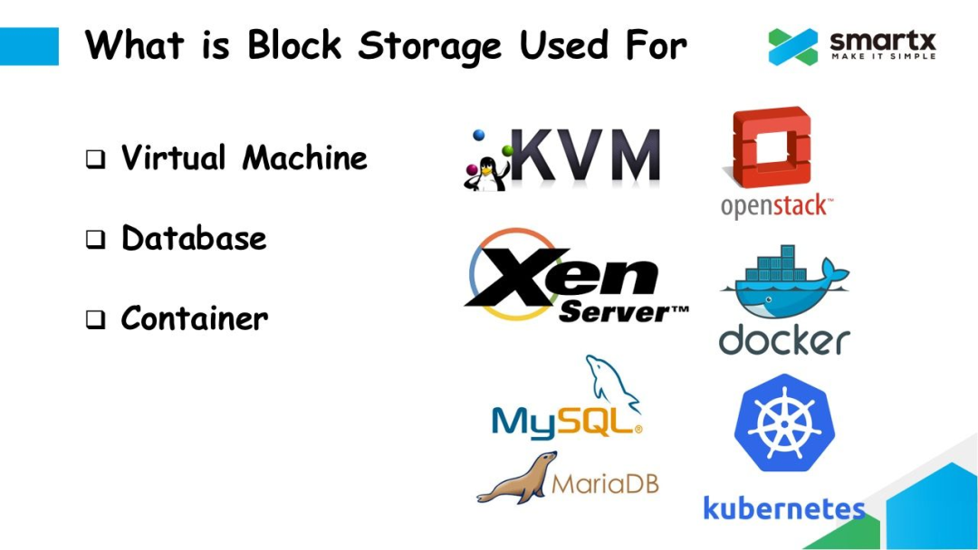 其中,分布式块存储的主要应用场景包括: