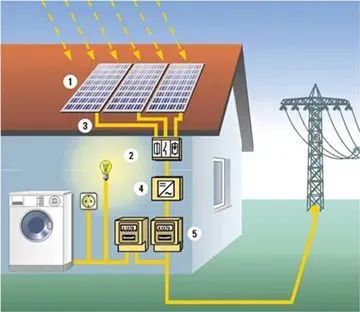 ①光伏组件 ②开关/保护/防雷 ③电缆 ④并网逆变器 ⑤电表