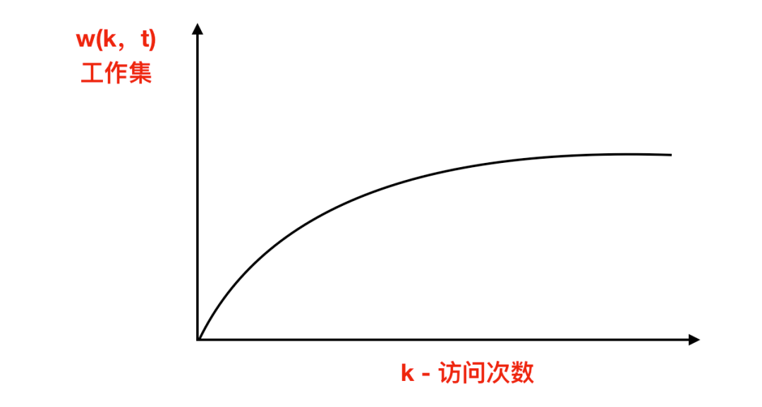 事实上大多数应用程序只会任意访问一小部分页面集合,但是这个集合会随着时间而缓慢变化,所以为什么一开始曲线会快速上升而 k 较大时上升缓慢。为了实现工作集模型,操作系统必须跟踪哪些页面在工作集中。一个进程从它开始执行到当前所实际使用的 CPU 时间总数通常称作 当前实际运行时间。进程的工作集可以被称为在过去的 t 秒实际运行时间中它所访问过的页面集合。