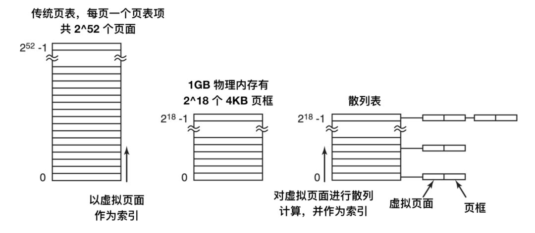 如果散列表中的槽数与机器中物理页面数一样多,那么散列表的冲突链的长度将会是 1 个表项的长度,这将会大大提高映射速度。一旦页框被找到,新的(虚拟页号,物理页框号)就会被装在到 TLB 中。