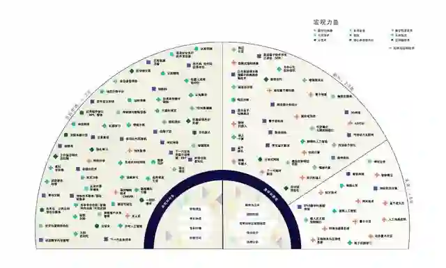 为了帮助大家更好的理解各类前沿技术动态,基于宏观科技力量及其可被预期的时间范围,报告归纳整理了一张完整的统一化视图。